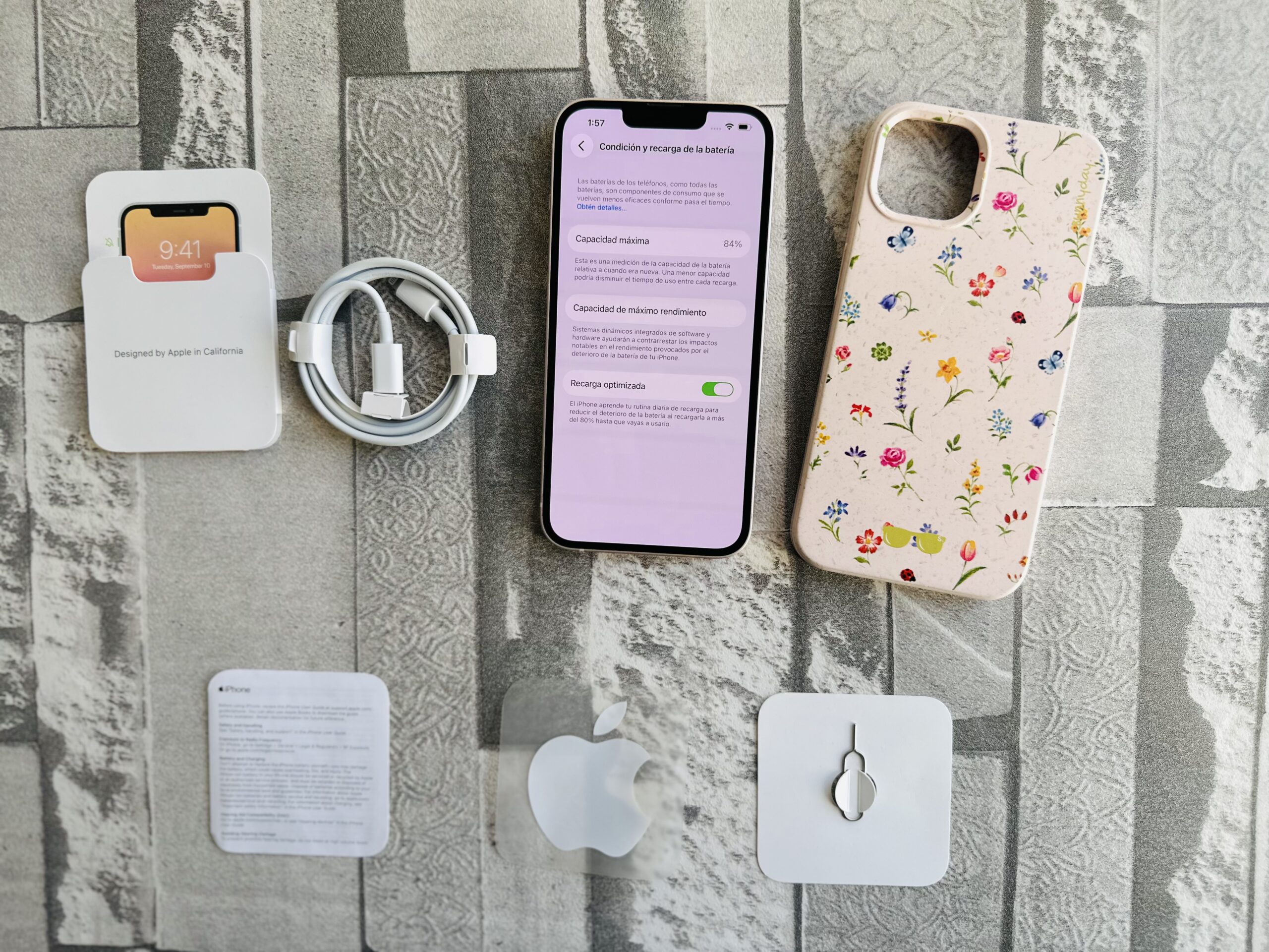 100 original, sin reparaciones. Incluye cargador original, funda transparente, manuales y estampas Apple.
